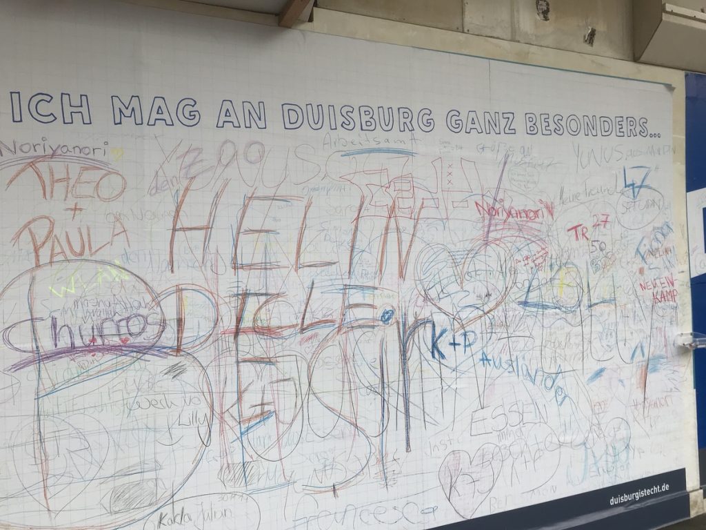 Ich stelle nicht in Abrede, dass eine Kampagne eine gute Sache ist. Aber diese sollte laufen: Seit Tag Eins der Kampagne sind diese Flächen, auf denen Duisburger ihren Senf zu Duisburg dazugeben können, komplett verhunzt. Da steht kein positiver sinnvoller Beitrag.