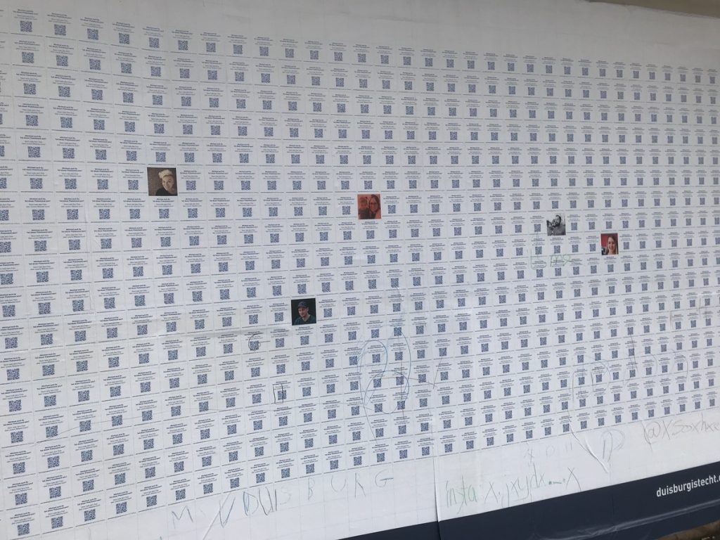 Was traurig ist: Die „111 Meter Mitmachen für Duisburg“ sind unbetreut. Sie wirken zumindest umbetreut. Auf einer fast leeren Plakatwand, kann man sich mit seinem Gesicht zu Duisburg bekennen. Keine Ahnung wie viele Menschen jobmäßig für das Image der Stadt verantwortlich sind: Aber selbst diese haben es wohl, auch wenn es ja ein Beitrag zur Jobsicherung wäre, nicht auf diese Wand geschafft. Weit weniger als 20 Gesichter in einer Großstadt, sind ein Armutszeugnis.