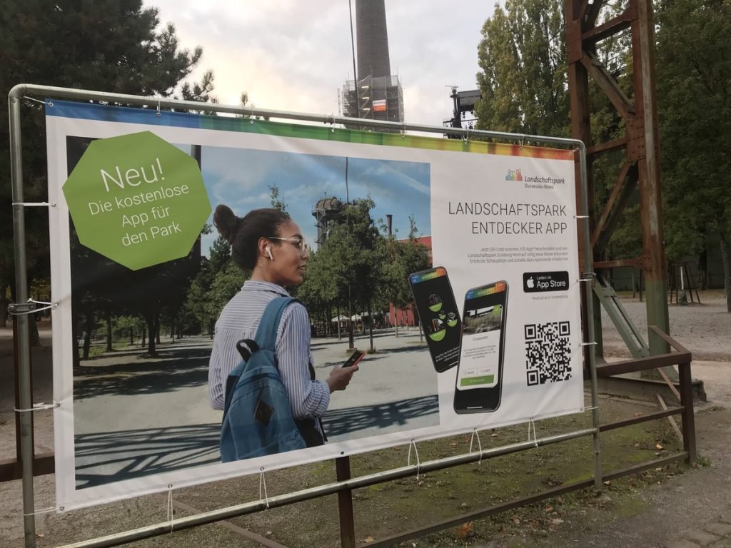 Seit Mitte des Jahres existiert außerdem eine App, mit aktuellen Infos, Veranstaltungshinweisen (z.B. eine Fahrradtour am 22.10.2020) und einer virtuellen Tour: Die App, die ich mir erst nach unserer Tour installiert habe, lädt dabei direkt zum Besuch des Parks ein: Wer Bilder sehen oder online mehr erfahren möchte, wird eingeladen in den Park zu kommen um diese Inhalte freizuschalten.