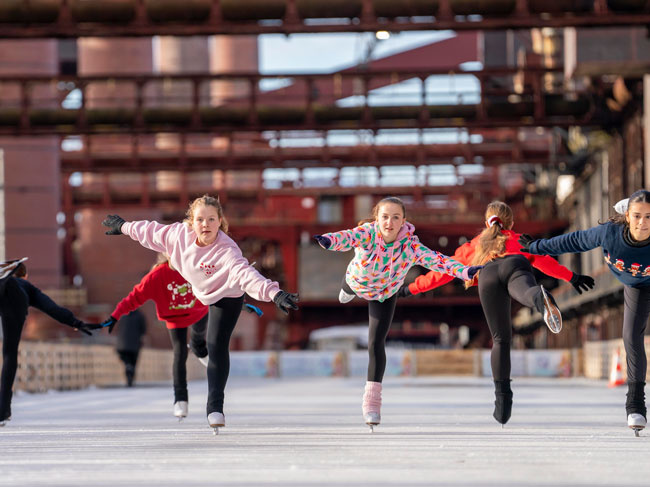 Das alte Druckmaschinengleis auf der Kokerei Zollverein verwandelt sich wieder in eine 150 Meter lange Eisfläche und markiert damit den Beginn der neuen Eisbahn-Saison. Bis Sonntag, den 5. Januar 2025, haben alle Schlittschuhfans die Gelegenheit, entlang der imposanten Koksöfen und Schornsteine über das Eis zu gleiten. Egal ob fortgeschritten, Anfänger oder im Rollstuhl – auf Zollverein sind alle willkommen, ihre Runden zu drehen. Wo früher Temperaturen von über 1.000 Grad Celsius herrschten, entsteht für viereinhalb Wochen ein Winterparadies für Schlittschuhläufer, das die Zollverein-Eisbahn zur coolsten der Welt macht.