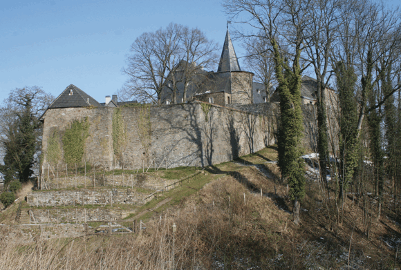 Die Höhenburg bzw. das spätere Schloss „Hoge Limburg“ dien- te bis in das 18. Jahrhundert als landesherrschaftliche Residenz und Verwaltungssitz der Grafschaft Limburg. Nach dem Erlöschen der direkten Erblinie der Grafen von Limburg aus dem Hause Isen- berg 1458 gelangte das zugehörige Territorium nach einer Erbfolge- fehde je zur Hälfte an die Grafen von Neuenahr-Alpen und an die 1511 ausgestorbene Seitenlinie Limburg-Broich. Anschließend fiel die dem Haus Broich zugehörige Hälfte des Besitztums an das rheinische Grafenhaus Daun-Falkenstein, um 1542 durch Heirat wieder geschlossen an die Grafen von Neuenahr zu gehen. Über die einzige erbberechtigte Tochter des ausgestorbenen Hauses Neuenahr gelangte die Grafschaft Limburg mit allem Zubehör, Titeln und Rechten 1592 an die Reichsgrafen von Bentheim.