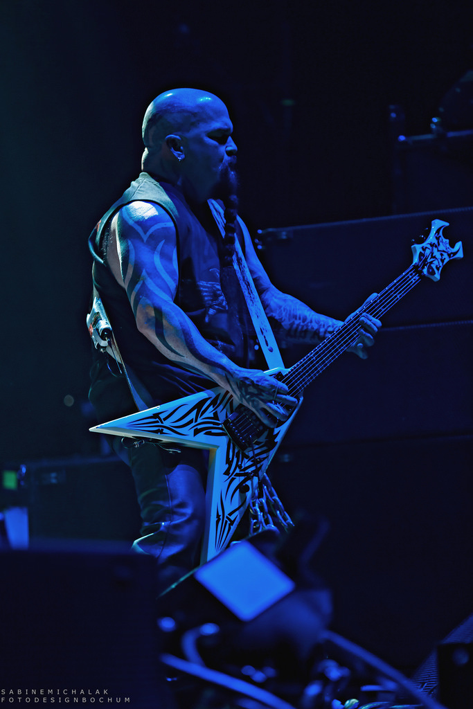 Der dritte Tag ließ musikalisch ebenfalls keine Wünsche offen. Die “Metaller” kamen wieder vollends auf ihre Kosten. Zwar war der Samstag nicht gänzlich ausverkauft, aber über die Tageskasse gingen noch so viele Tickets weg, dass es zum Auftritt von Apocalyptica am frühen Abend schon wieder recht eng wurde. Nachdem sie neben bekannten Metal-Stücken auch eigene Werke auf ihren Streichinstrumenten und mit fliegenden Haaren zum Besten gegeben hatten, wurden sie von der Mittelalter-Rock-Band In Extremo abgelöst. MIt ihren Dudelsäcken und Mittelalterinstrumenten lockerten sie die Stimmung gekonnt auf, und dann warteten alle gespannt auf One Of „The Big Four“ Trash-Metal Bands Slayer, um Gründer Kerry King und Sänger Tom Araya. Mit Vollgas heizten sie der Menge ein und wurden frenetisch abgefeiert.