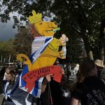 Auf der kleineren Gegendemo erfährt man, wie sich David beim Kampf gegen Goliath gefühlt haben muss. Wobei die Sache damals für Goliath nicht gut ausging, was Hoffnung gibt. Die kleinere Truppe der Gegendemo begrüßt die Terror-Fans mit Sprechchören: „Wo sind die Geiseln?“ und „Free Gaza from Hamas!“ wird lautstark in Richtung der Demonstration skandiert.