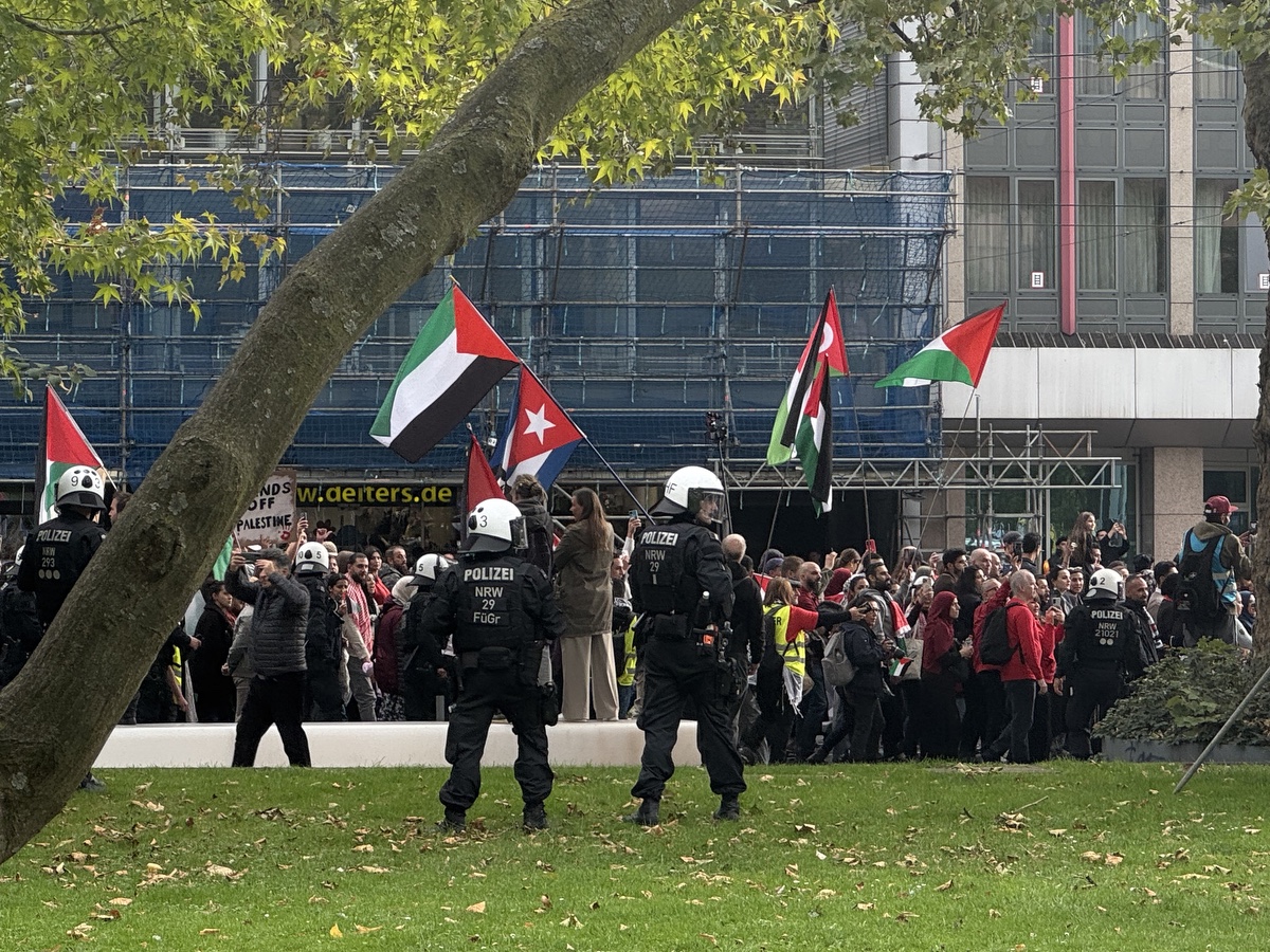 Gestern fanden in Berlin und Düsseldorf „Demonstrationen für Gaza“ statt: Ab 14:45 Uhr versammelte sich am Graf-Adolf-Platz in Düsseldorf Gegendemonstranten, die ihre Solidarität mit Israel, das am 7. Oktober 2023 aus Gaza angegriffen wurde und immer noch aus dem Terrornest und dem Jemen, über die Proxies des iranischen Mullah-Regimes, beschossen wird.