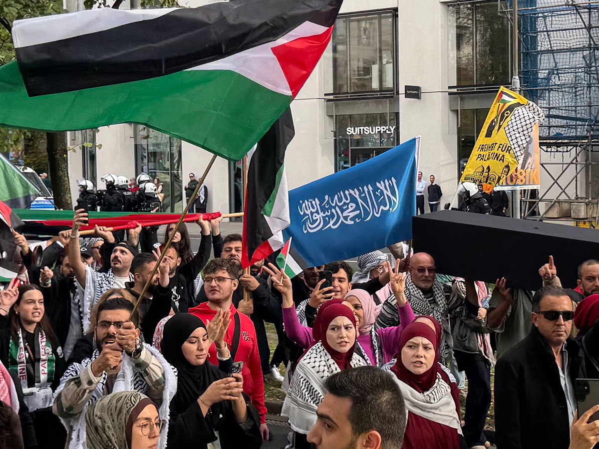 Die Hamas-Fans halten hier ihre letzte Kundgebung ab, die laut Polizei erst gegen 20:45 Uhr beendet wurde. Lange davor, gegen 18:50 Uhr endete die Gegenkundgebung.