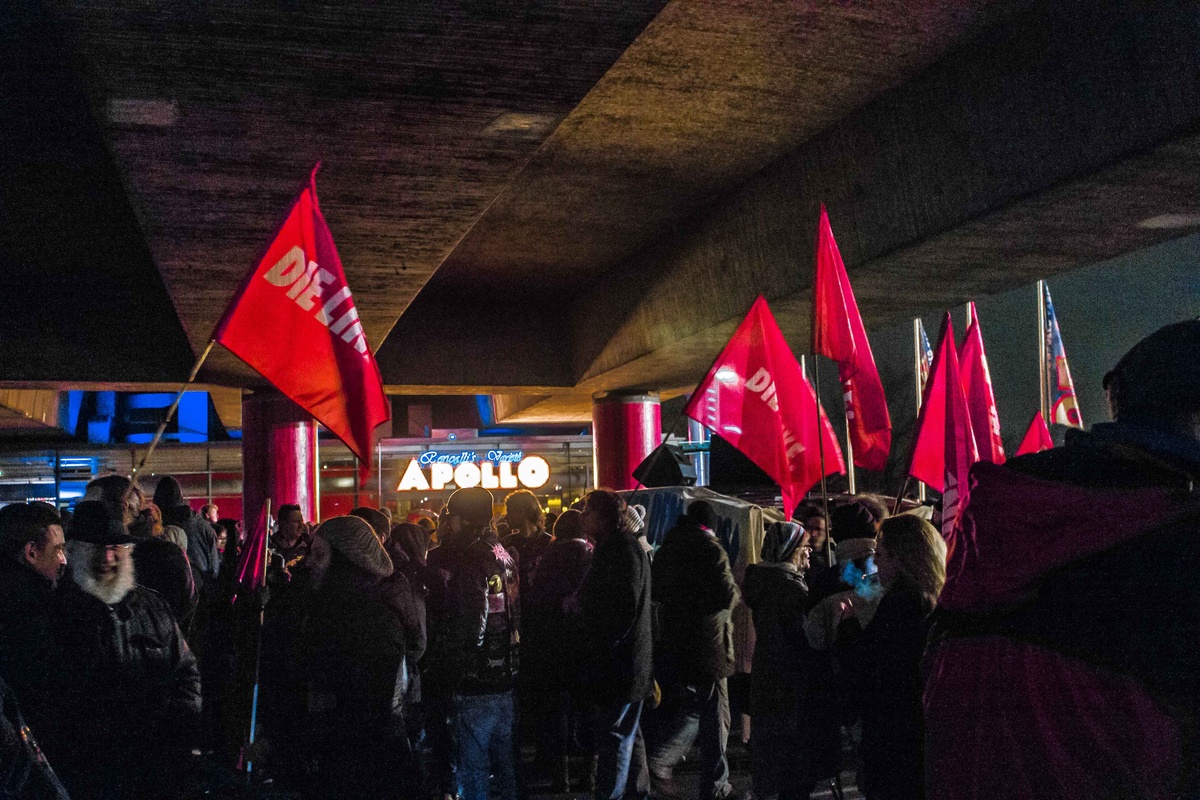 In Düsseldorf versammelte sich am Montag Abend das rechtspopulistische Bündnis Dügida mit ca. 450 Teilnehmern, um gegen die „Islamisierung“ des „Abendlandes“ zu demonstrieren. Ein linkes Bündnis versuchte, die Veranstaltung zu stören. Vertreter von Politik und Gewerkschaften hielten eine Gegenkundgebung auf dem Johannes-Rau-Platz mit insgesamt ca. 800 Teilnehmern ab.