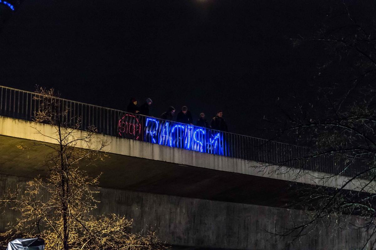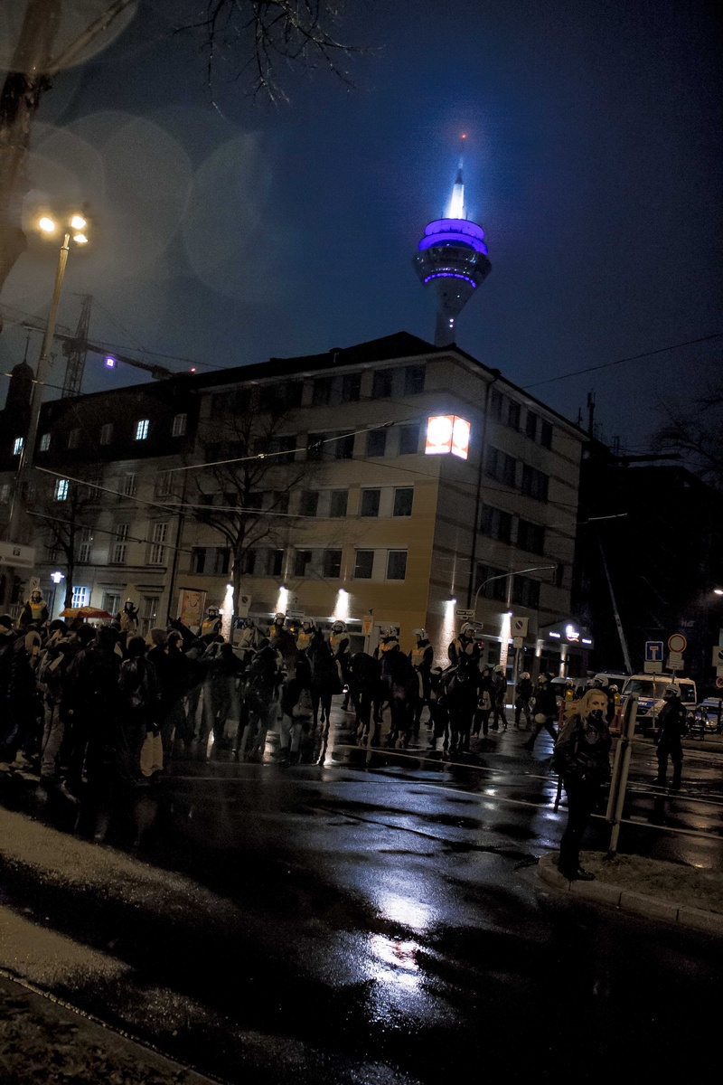 Die Teilnahme von ca. 50 Neonazis aus Dortmund ließ sich in der Dunkelheit nicht verifizieren. Im Hintergrund der Veranstaltung konnten die Teilnehmer die Parolen der linken Gegendemonstration hören. Die Mitglieder des Düsseldorfer Landtags hatten ihre Fenster mit Plakaten verklebt.