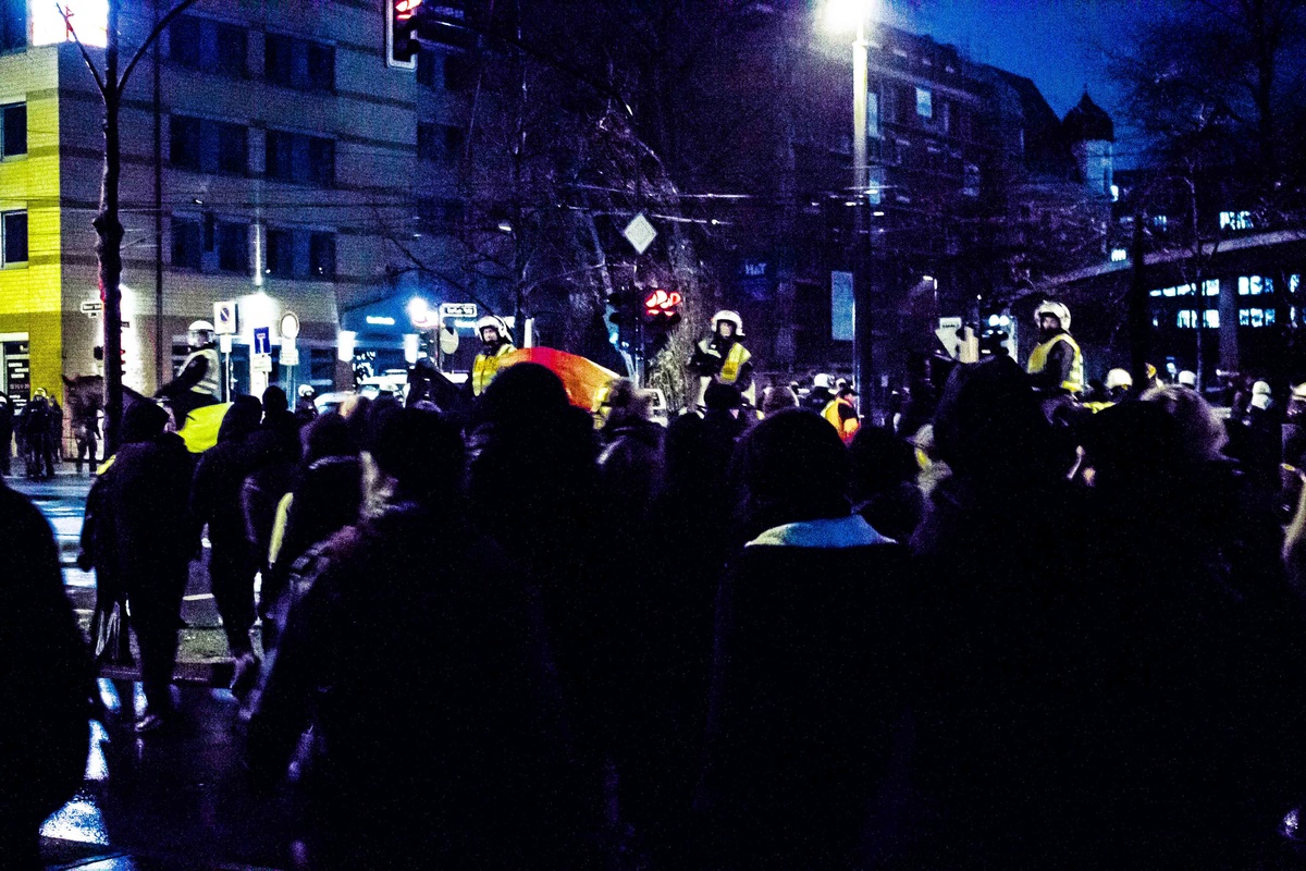 Klar, in der Gegenkundgebung hat niemand mehr ‚riskiert‘ als kalte Füße. Aber entscheidend ist doch, sie waren da. Hier ist die bürgerliche Mitte. Demo-unerfahren. Leise. Berechenbar. Harmlos. Gratismutig, so what? Und die, die vorgeben, die bürgerliche Mitte zu repräsentieren….die outen sich schnell als die grölenden rechten Rattenfänger, die sie sind.