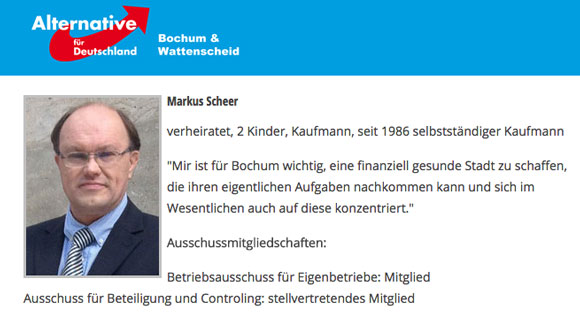 Als Politiker für die rechtspopulistische AfD kontrolliert er nun die Volkseigenen Betriebe der Stadt Bochum. Da mag die nachgewiesene Fähigkeit, Geschäftsunterlagen zu fälschen, nicht die schlechteste Qualifikation sein. Nur mit dem immer stärker bröckelndem Image der AfD als seriöse Wirtschaftspartei passt das alles irgendwie nicht zusammen. Sicher, der Analyse der Bochumer AfD, das „Bochum (..) eine durch Jahrzehnte andauernde Misswirtschaft in den Ruin getriebene Stadt.“ ist, kann man nur zustimmen. Aber das ein verurteilter Betrüger nun in die Bücher schaut, ist dann doch etwas unheimlich.