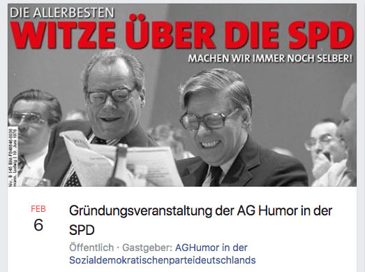 […] eine Meldung der Ruhrbarone am 10. Januar 2018. Ernster, OK: falsche Beschreibung, unernster Hintergrund: Die Gründung der AG Humor in der SPD. […]