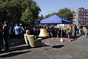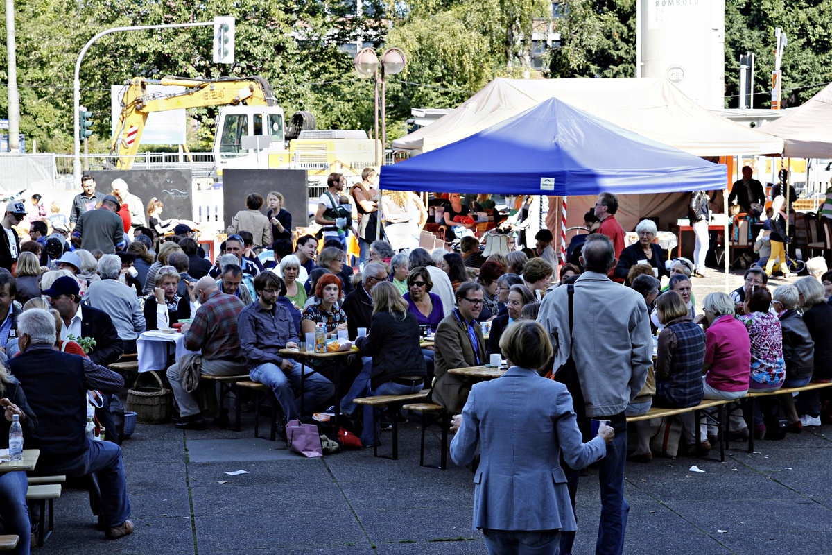 Leider ist das gemeinsame Frühstück auf dem Vorplatz des Schauspielhauses Bochum schon vorbei, aber es wird noch bis heute Abend weiter gefeiert.