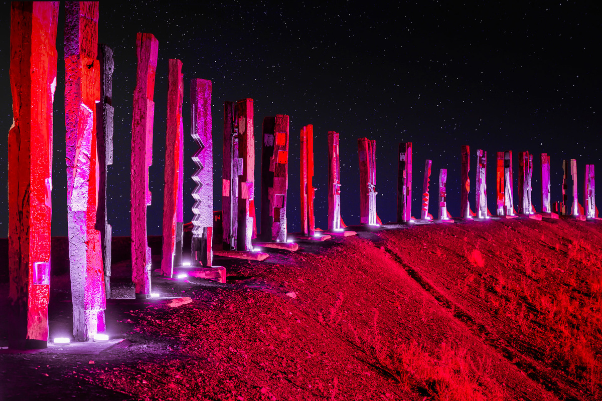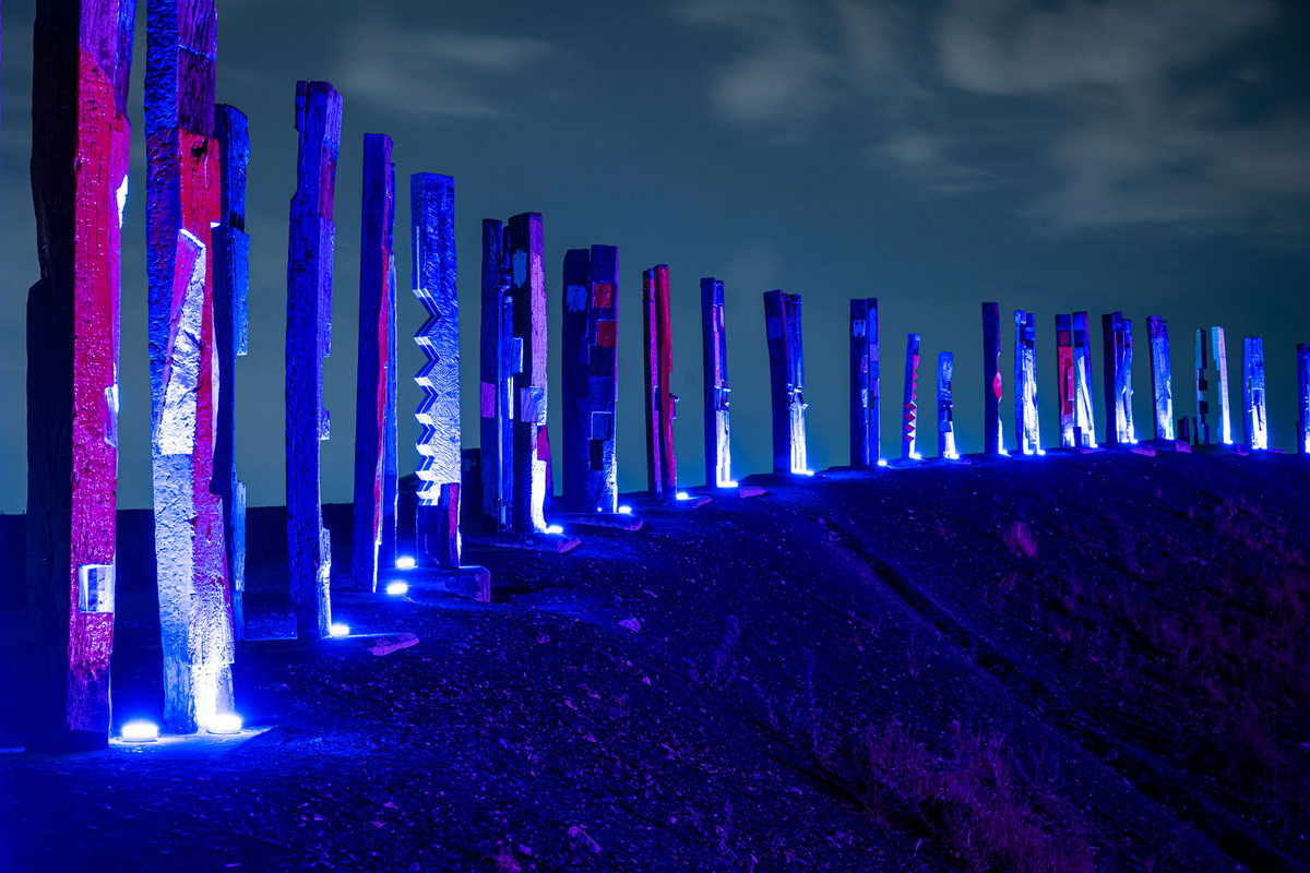 Die 2002 von Augustin Ibarrola aufgestellten über 100 Totems sollten leuchten. Imposant und gut zu sehen sein. Zumindest für eine Nacht, für ein Projekt. Für ein Foto. Geldgeber würde es keine geben. Brauchte es aber nicht. Alles in Eigenregie: Idee, Finanzierung, Umsetzung.