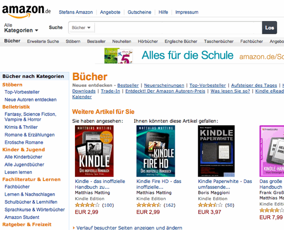 ich würde Amazon aber nicht auf Bücher verkürzen. Amazon dürfte ja in jedem Bereich, vielleicht außer Schuhe und Bekleidung, der meistgenutzte Online-Shop sein in Deutschland.
