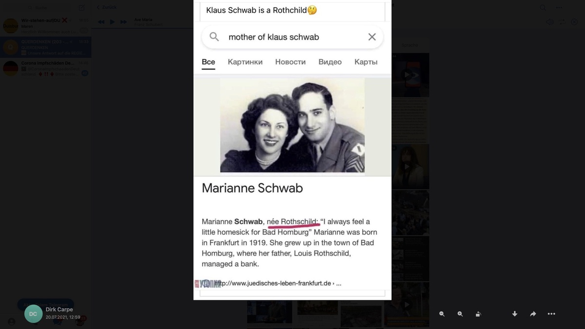 Neben den gerade erwähnten Verschwörungstheorien, dürfen in der Gruppe der Duisburger Querdenker auch antisemitische Verschwörungstheorien nicht fehlen. Klaus Schwab wird bei „Duisburg steht auf“ zu einem Mitglied der Familie Rothschild (Screenshot). Erwiesenermaßen ist diese Behauptung falsch. Die ehemalige Bundeskanzlerin Angela Merkel (CDU) wird zur „Rothschild-Marionette“ und „Volksverräterin“ erklärt (Screenshot).