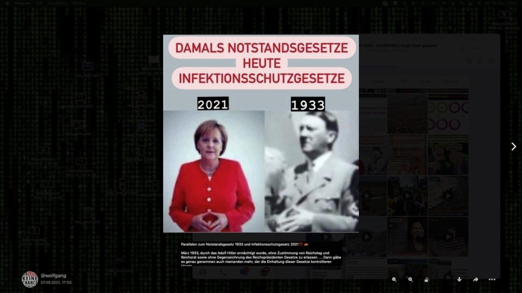 […] waren, bis zur Berichterstattung hier im Blog, monatelang in der Telegram-Gruppe von “Duisburg steht auf” zu sehen. Vergleiche zwischen der heutigen Justiz und der NS-Justiz blieben beim Spaziergang […]