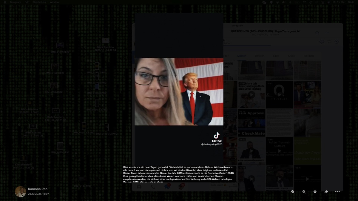 Der Todeswunsch gegenüber Jens Spahn ist seit über einem Jahr online, die Bilder und Videos mit QAnon-Inhalten ebenfalls. Ihr Gruppenmitglied „Ramona Pen“ teilt (auf den ersten Blick) nichts anderes. Ihr Kanal besteht ausschließlich aus Fake-News – Bemühungen um dies zu unterbinden sind nicht zu erkennen.