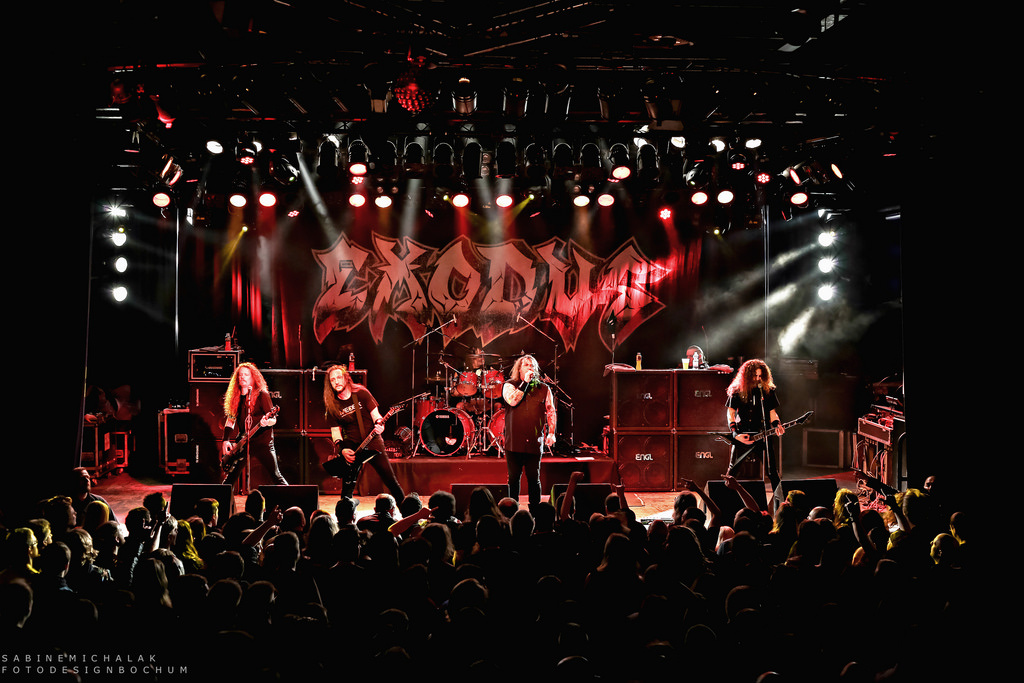 Exodus wurden 1981 von Schlagzeuger Tom Hunting und Gitarrist Kirk Hammett gegründet. Letzterer wechselt 1983 zu Metallica, wo er Dave Mustaine (später Megadeth) ersetzt. Mit dem Gitarristen Gary Holt und Sänger Paul Baloff entsteht 1985 das Debüt „Bonded by Blood“, einer der Klassiker des US-Thrash Metal. Nach einigen Umbesetzungen und auch vielen schweren Zeiten bringen Exodus 2014 ihr aktuellstes und zehntes Album „Blood In Blood Out“ (Nuclear Blast) auf den Markt, und mit Platz 29 in den deutschen und Platz 38 in den US-amerikanischen Charts feiern sie ihr neues Comeback.