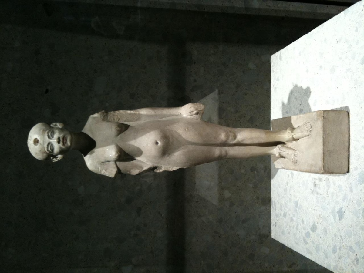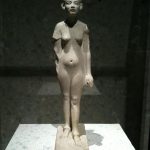 Schließlich sind wir doch noch die paar Schritte von Grebe zu Nofretete geschlendert. Der Kassencontainer vorm Neuen Museum (ganz in der Nähe der Residenz Angela Merkels) ist nur schwer als Kassenhäuschen dieses Museums zu erkennen. Schließlich finden wir’s aber raus, kaufen „Zeitfenster-Tickets“ und verschwinden in der Kühle des Altertums, der Vor- und Frühgeschichte. Ich sage: „Bevor wir hier müde werden, geht’s sofort ab zu Nefertiti. Planerfüllung.“ B. nickt. Wir fragen uns durch. Und was ist: Auch Nofretete möchte bitte nicht geknipst werden, nicht mal ohne Blitzlicht. Fotografieren verboten. Na egal. Ich gehe drei vier Minuten um ihren Kopf herum. Wie alt war sie, als ihr Abbild modelliert wurde. 18? Auf jeden Fall ein kleiner Kopf, schönes einäugiges Gesicht, aber hohlwangig. Oder liegt’s an der Beleuchtung? Fast wirkt sie magersüchtig, heute wäre sie Super-Model oder „Face of the year” des Lollywood-Kinos. Ich fotografiere dann jene kleine Nofretete-Figur, die man fotografieren darf und ein paar andere Schöne. Danach nehmen wir uns noch die Zeit, um das ganze Museum zu durchstreifen, es lohnt sich. Nicht nur wegen der kühlen Räume.