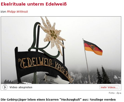 Heute laufen Meldungen durch die Gazetten und das Netz von Soldaten. Von Soldaten, die einem bizarren Kult frönen. Die Rede ist von Mißhandlungen und Demütigungen, von Dreck und Schmutz. Ich war überrascht. Nach den Geschichten aus Coesfeld im vergangenen Jahr hatte ich gedacht, die Armee hätte den Schmutz überwunden.