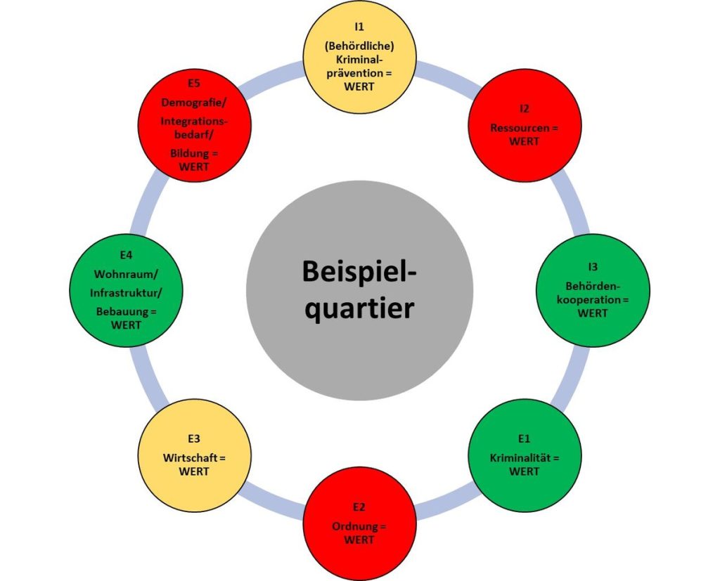 Anhand von acht Bereichen wird ein Quartier bewertet. – Alle Rechte vorbehalten Bundeskriminalamt