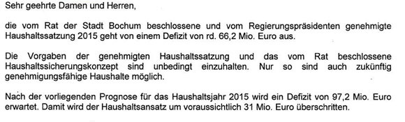 Der Öffentlichkeit gegenüber spricht die Stadt von 20. den Ratsmitgliedern gegenüber von 30 Millionen. Chaos. Bochum ist finanziell wieder einmal am Ende.
