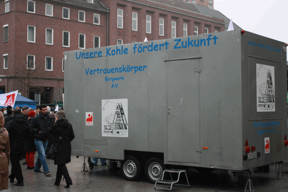 Redner, darunter der der Bochumer Opel-Betriebsratschef Rainer Einenkel, forderten eine langfristige Perspektive für das Werk und den Erhalt der Arbeitsplätze bei Opel und den zahlreichen Zulieferbetrieben aus dem Ruhrgebiet.