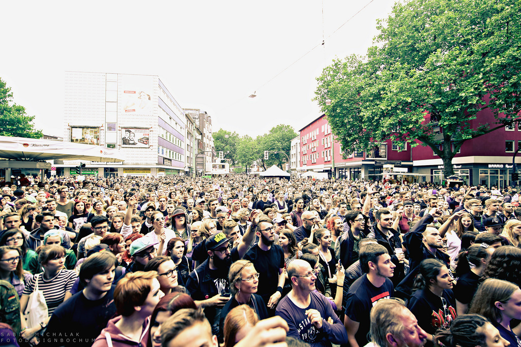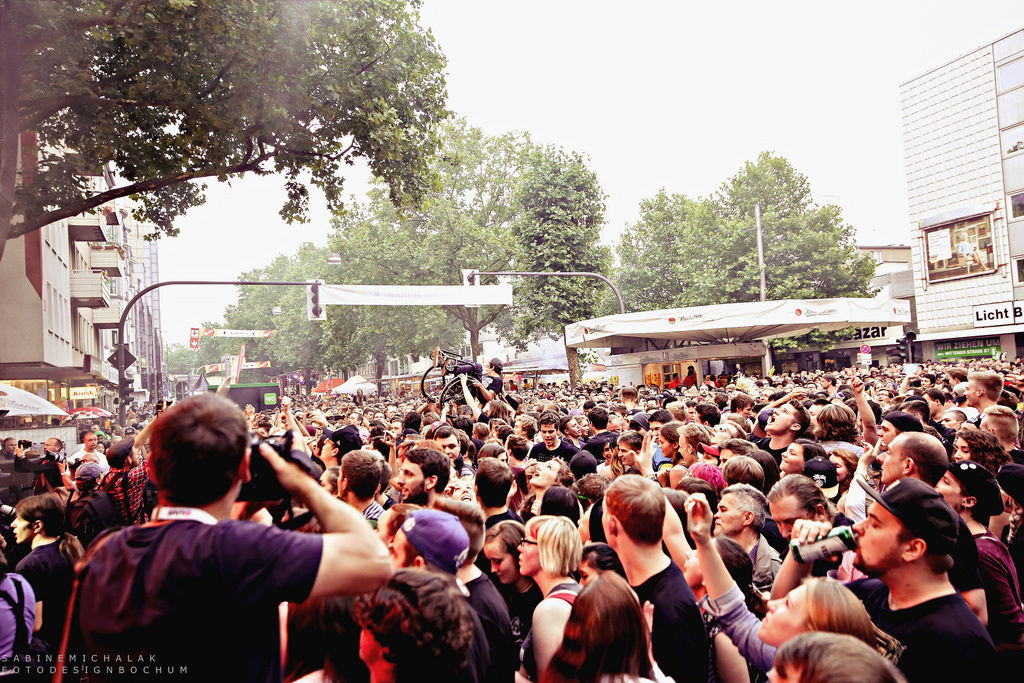 Auch am dritten Tag von Bochum Total strömten die Besucher ins Bochumer Bermudad3eck, bis Samstag wurden nach Schätzungen der Polizei insgesamt rund 450.000 Musikfans begrüßt.