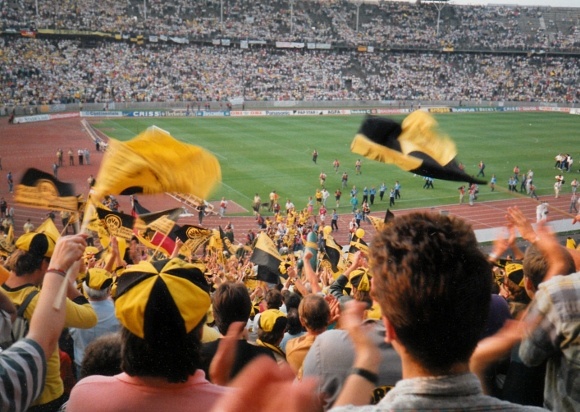 Damals schon herrschte diese unglaubliche Begeisterung im Fanlager der Westfalen. Über 40.000 Dortmunder sollen es auch damals schon gewesen sein, die sich auf den langen Weg nach West-Berlin gemacht haben. Damals noch ein wenig Abenteuer, musste man doch über die ‚Zonengrenze‘ inkl. einer häufig etwas herablassenden ‚Behandlung‘ der DDR-Grenzposten. Ich erinnere mich zum Beispiel noch lebhaft daran, dass auf dem Rückweg ein übermüdeter Kumpel von mir, im ‚Bulli‘ schlafend, von einem Grenzposten unsanft per leichtem ‚Stiefeltritt‘ geweckt wurde.