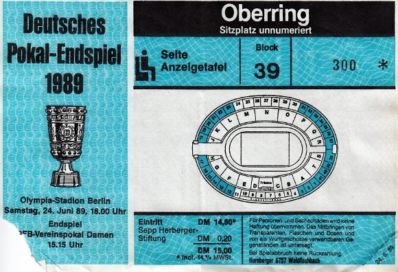 Bei Durchsicht der alten Erinnerungsstücke habe ich zudem festgestellt, dass der Sitzplatz damals 15 (!!!) DM gekostet hat. Und das Endspiel der Damen war da auch noch mit dabei…. Da wird einem mal wieder deutlich wie viel teurer es heutzutage ist sich ein solches Sporthighlight live im Stadion anzusehen.
