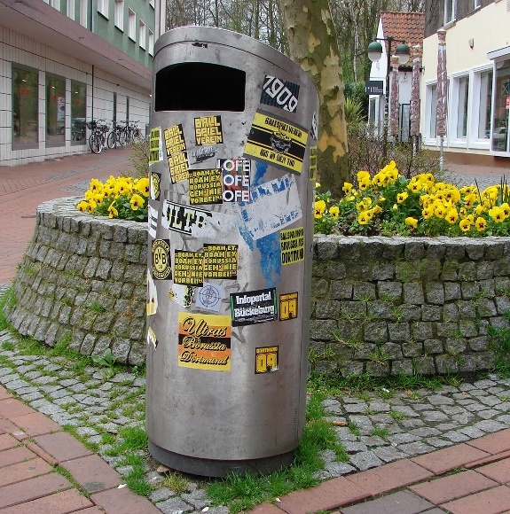 Inzwischen gibt es in Waltrop kaum noch ein Verkehrsschild, eine Regenrinne, oder einen Papierkorb, ohne die optisch wenig ansprechenden Verzierungen in den jeweiligen Vereinsfarben.