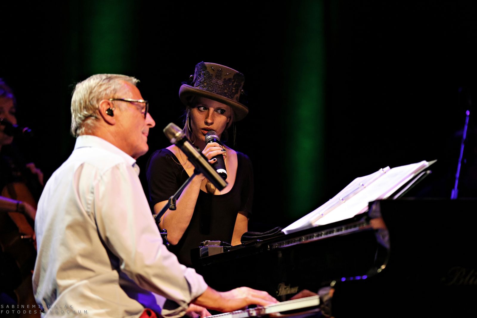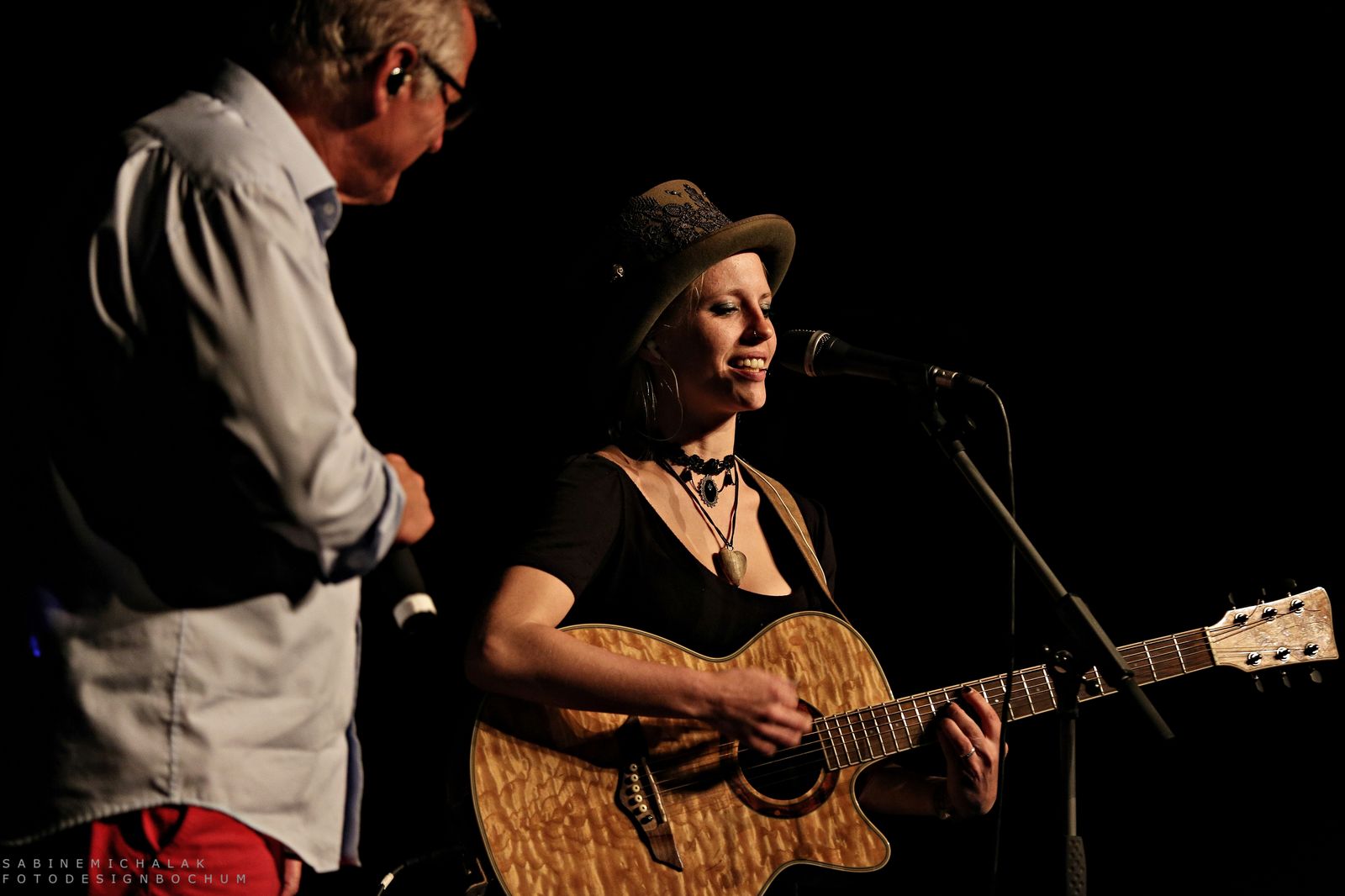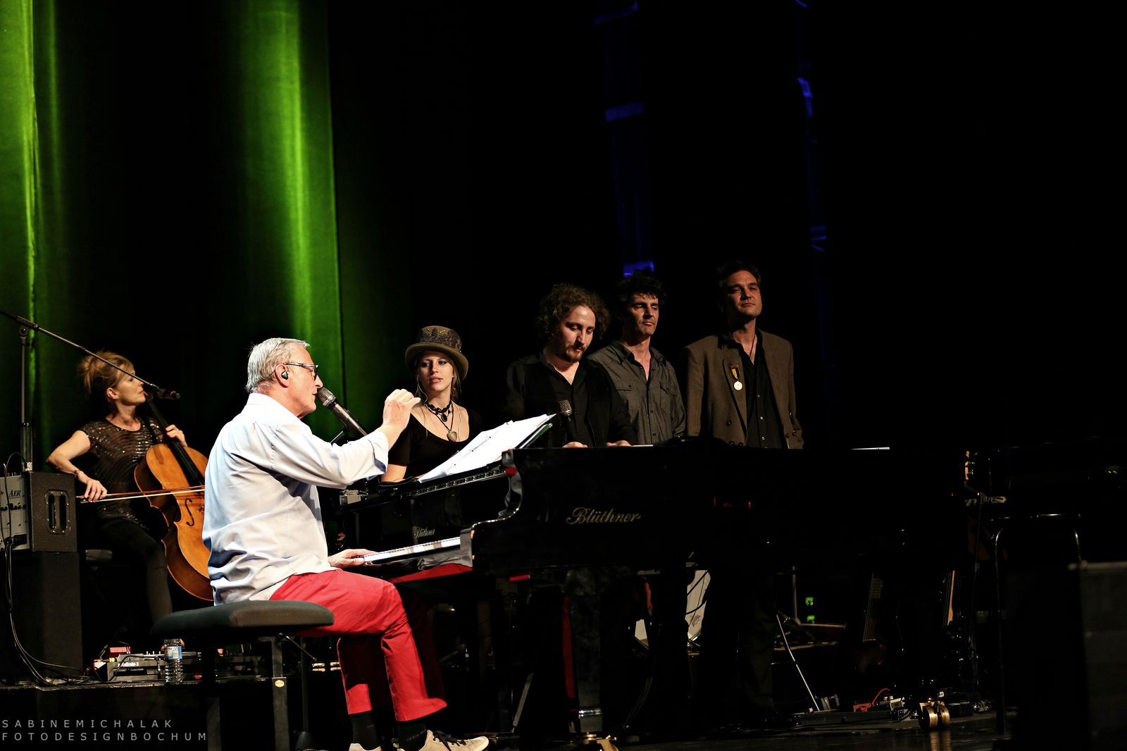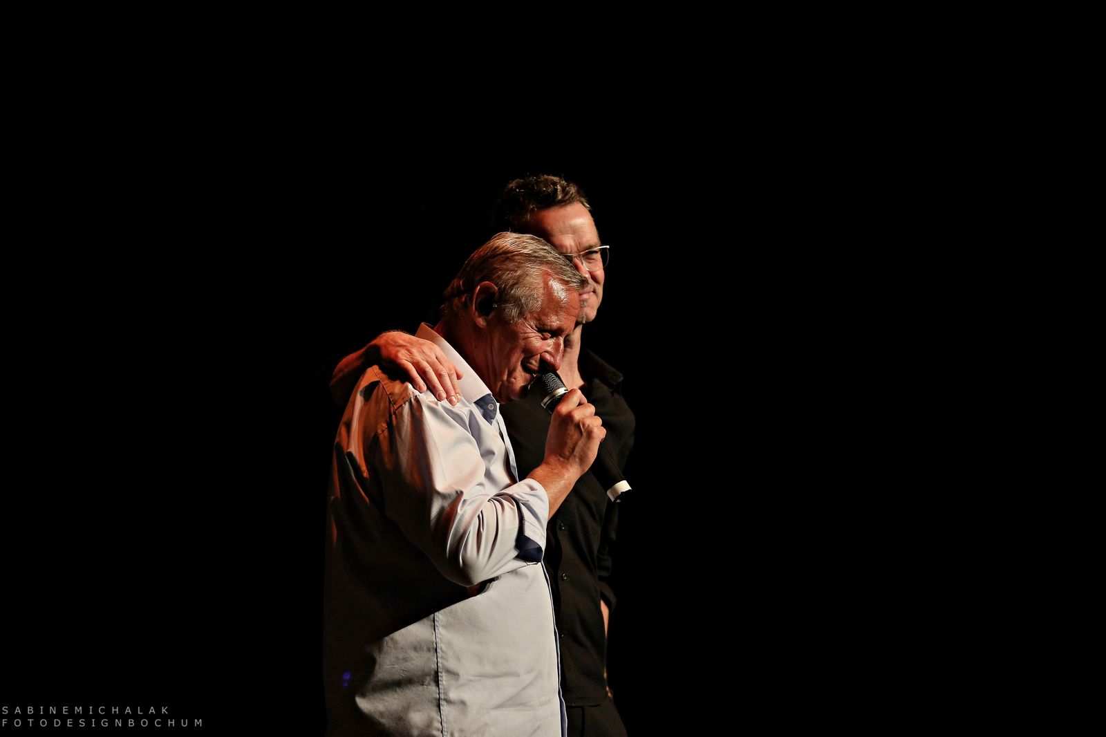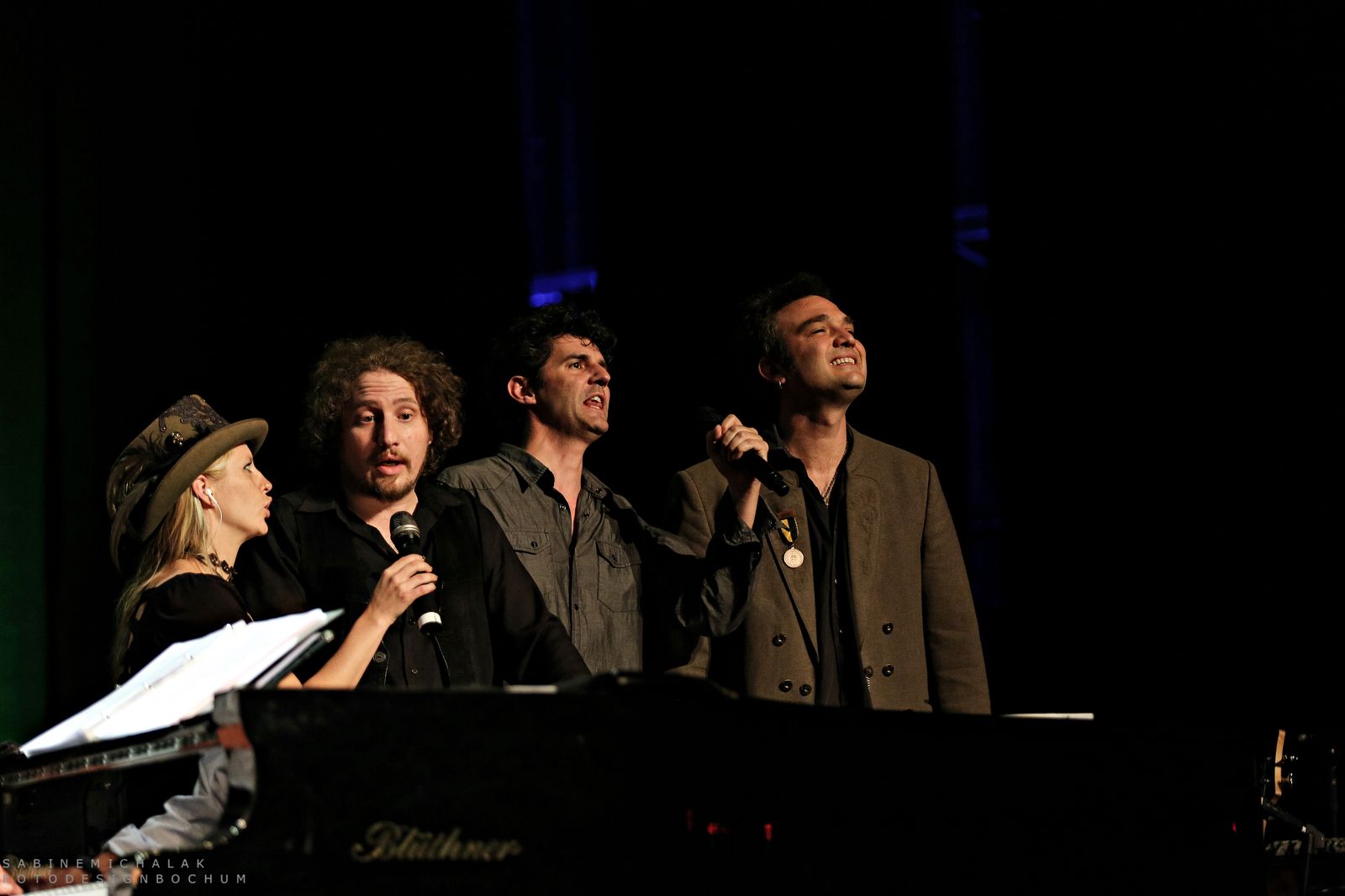 In Bochum stellte er seinen Gästen dann auch seine vier jungen Labelkünstler Dominik Plangger, Cynthia Nikschas, Prinz Chaos II und Roger Stein vor und moderierte ihre Bühnenauftritte und das nicht ohne sichtbaren Stolz. Im Rahmen seines Konzertabends, den Wecker mit vielen Anekdoten, Liedern und vor allem viel Humor gestaltete, gab er seinen Schützlingen die Möglichkeit, sich alleine einem großen Publikum zu präsentieren. Die Krönung des dreistündigen Abends war dann ein großartiges musikalisches Miteinander aller Musiker und viele Zugaben und ein Publikum, das immer wieder begeisternd aufstand und applaudierte. Hier sind die Fotos: