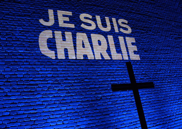 Dass jetzt über diesem Kreuz Je suis Charlie steht – das Foto stammt aus der Christuskirche Bochum, Januar 2015 nach dem Attentat auf die Redaktion von Charlie Hebdo – erklärt sich einerseits von selbst: Charlie Hebdo agiert ähnlich wie der Nazarener, also wehrlos mit viel Vertrauen in den Geist. Das Je suis Charlie überm Kreuz kann andererseits auch als Blasphemie gelesen werden: Im Johannesevangelium finden sich sog. „Ich bin“-Worte Jesu, denen eine herausragende Bedeutung zugesprochen wird: Ich bin der Weg, die Wahrheit und … Charlie? Charlie Hebdo? Ja. Anderes Beispiel: