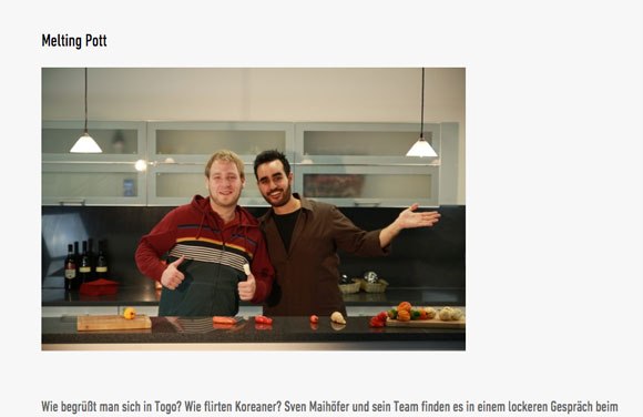 Nun gibt es Zweifel, ob das mit dem innovativ so stimmt, denn es wurde ein Projekt gefördert, das offenbar abgekupfert wurde – der Meltingpott. Eine Kochsendung…