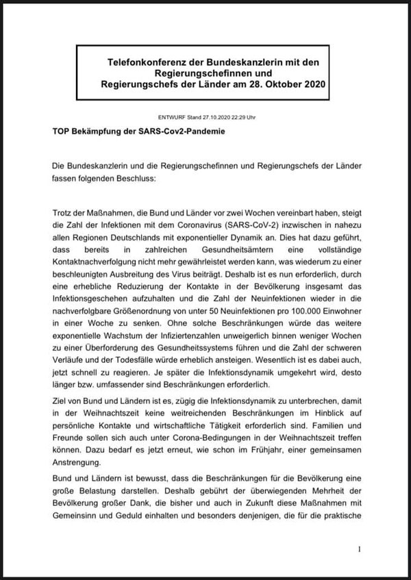 […] Länder über neue Schutzmaßnahmen gegen das sich immer rasanter ausbreitende Corona-Virus. Erste Pläne sickerten bereits durch. Was am Ende wirklich bei den Beratungen herauskommen wird, ist aktuell naturgemäß noch […]
