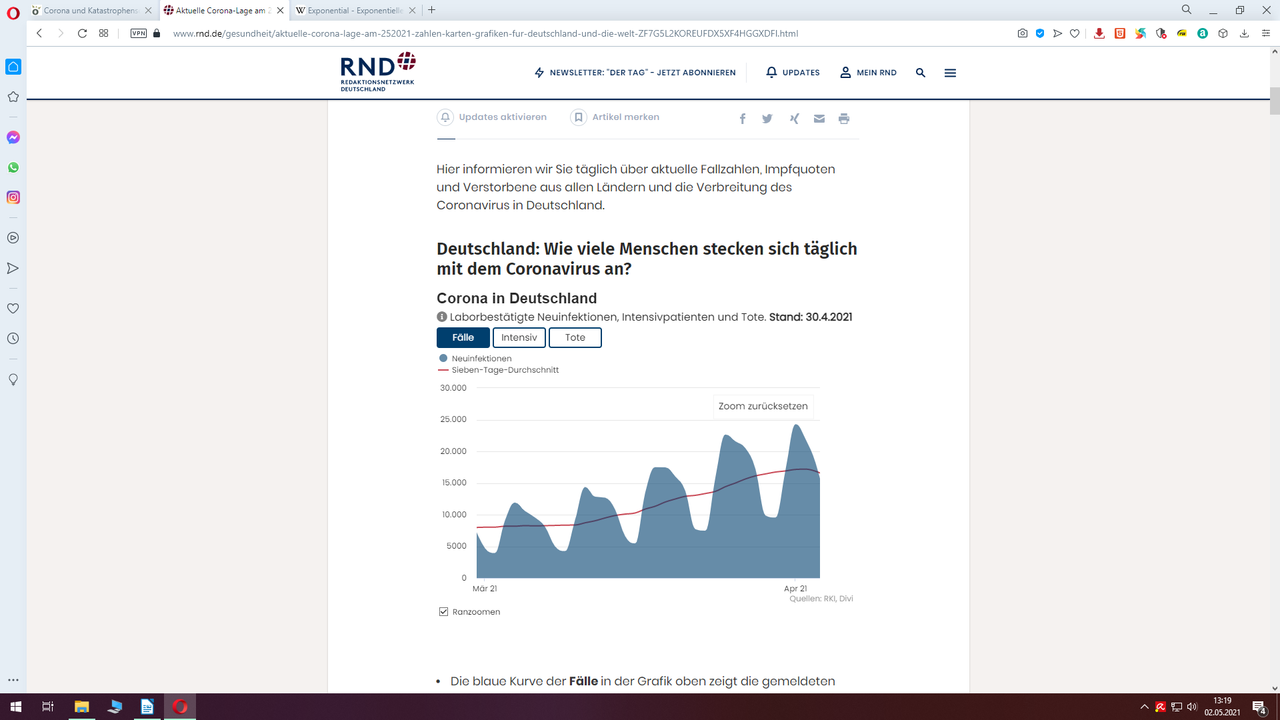 Erste Antwort, zweiter Absatz: Die Fallzahlen sind laut RKI noch zu hoch, auch wenn das exponentielle Wachstum sich seit Ostern nicht so fortgesetzt hat, …