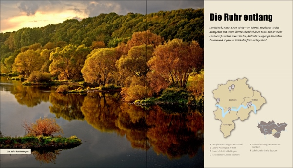 „Kohle, Stahl, Fußball – das ist das Klischee. Kunst, Kultur, Erholung – gehören nicht weniger dazu. Zwischen Duisburger Innenhafen und Dortmunder U sind die fotografischen Möglichkeiten nahezu unbegrenzt. Gehen Sie mit auf fotografische Entdeckungsreise! Wir führen Sie zu den spektakulären Fotospots und zu den Highlights jenseits der Postkartenmotive.“