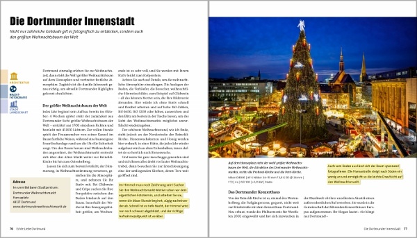 Wenn man denn dabei etwas kritisieren kann, dann ist es vielleicht der Preis, welcher mit 29,90 Euro für die gebundene Ausgabe sicherlich zwar nicht besonders hoch liegt, aber für einen Ruhrgebietsreiseführer wohl doch am oberen Rand der gerade noch so vertretbaren Preisspanne liegen dürfte. Zugute halten muss man dem ‚Foto-Reiseführer‘ dabei im Gegenzug allerdings, dass er immerhin fast 380 Seiten umfasst.