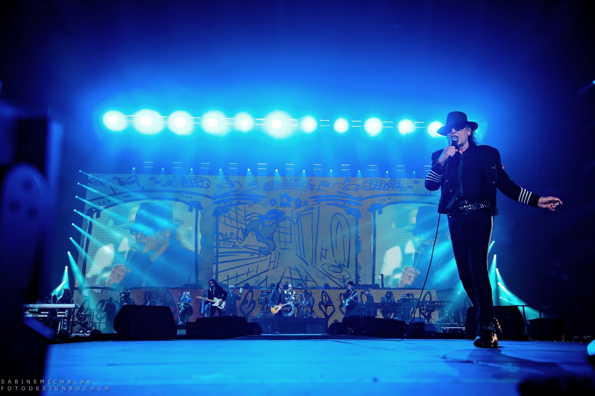 Doch von Panik keine Spur am heutigen Abend in der restlos ausverkauften Lanxess Arena in Köln, dafür erlebten 18..000 Zuschauer eine gut zweieinhalbstündige Show der Superlative, einen gigantischen Tourabschluss der “Stärker als die Zeit” Tour des Panikrockers, ungehemmt und ungebremst.
