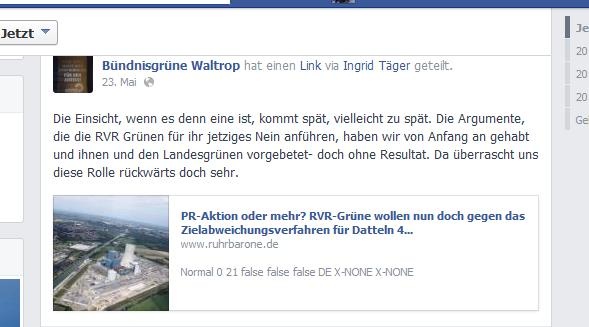 Die Waltroper Grünen, bei denen ich selber zwischen den Landtagswahlen 2010 und 2012 Mitglied war, sehen sich seit Längerem schon in Erklärungsnot gegenüber ihren Wählern vor Ort und wünschen sich eine klare Linie der RVR-Fraktion für die Zukunft, damit sie nicht noch häufiger solche Überraschungen erleben müssen wie in der Vorwoche, als die Pressemeldung der Grünen RVR-Fraktion einmal mehr für große Unruhe an der Parteibasis im Ostvest sorgte.