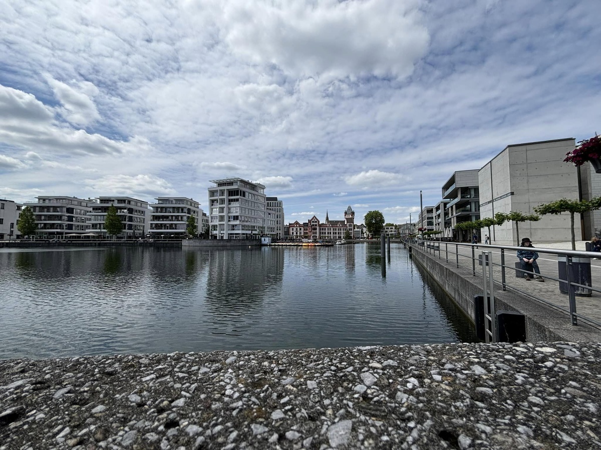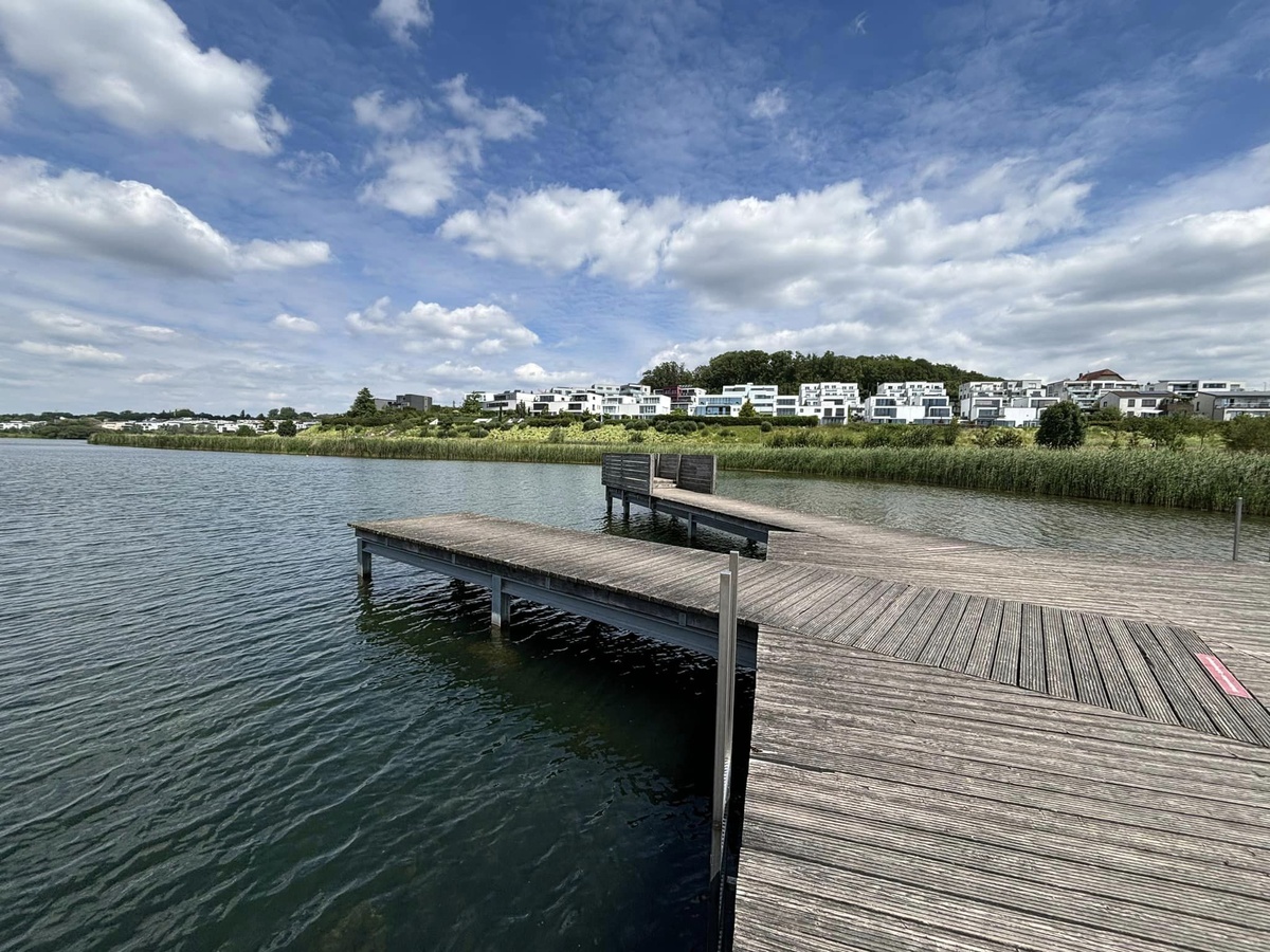Was mir aber auch nach all den Jahren seit der Fertigstellung des künstlichen Geländes noch immer nicht gelingen will, das ist der total phantasielosen Bebauung in Ufernähe etwas Positives abzugewinnen. Diese langweiligen ‚Würfelhäuser‘, die man in den vergangenen Jahren immer häufiger auch anderswo entdecken konnte bzw. musste, die empfinde ich auch nach einer mehrjährigen Eingewöhnungsphase noch nicht als schöner. Die sind schlicht hässlich, in dieser Anhäufung und in ihrer Gleichförmlichkeit. Wer sich auf diesen Bebauungsplan eingelassen hat, der hatte alles, aber sicherlich keinen Geschmack. 😉