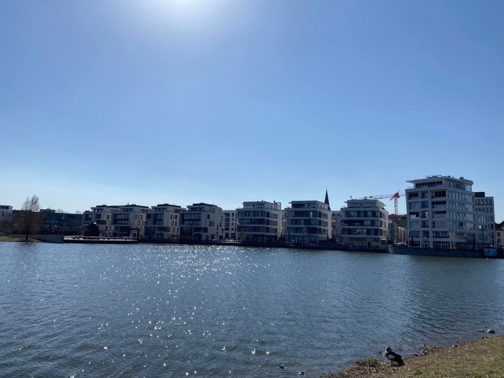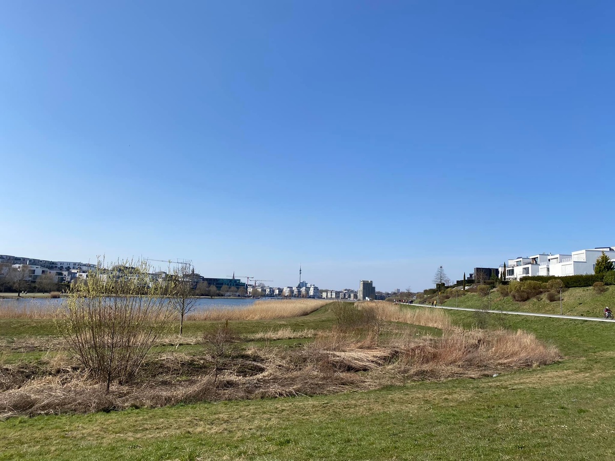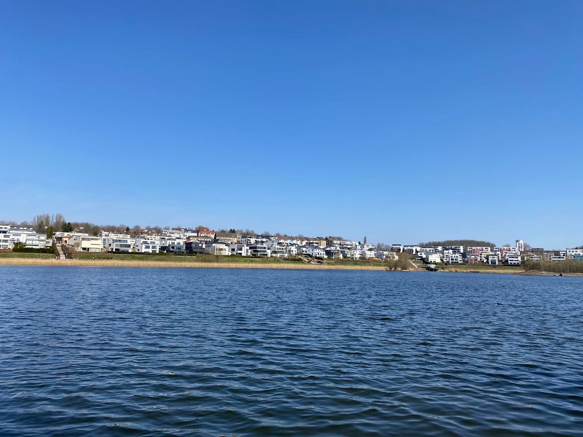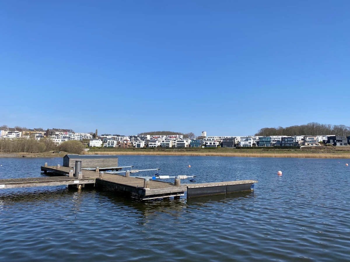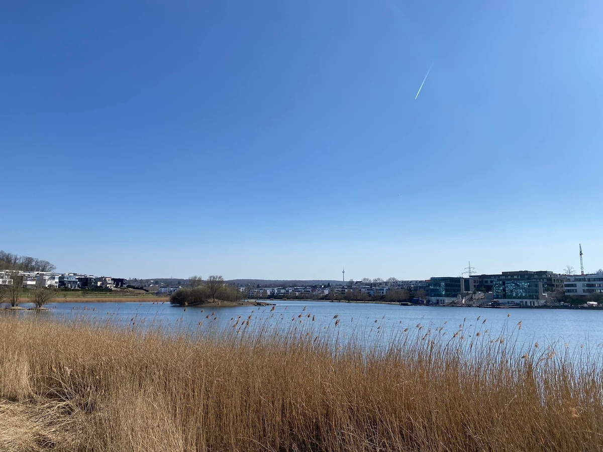 Höchste Zeit also, die vor knapp drei Jahren vor Ort gemachten Erfahrungen und die von einst gespeicherten Erinnerungen noch einmal einer Aktualisierung vor Ort zu unterziehen. Bei idealen äußeren Bedingungen zeigte sich der See im März 2022 von seiner besten Seite. Hunderte Besucher pilgerten über die Uferpromenade, saßen an einem normalen Dienstag in der Mittagspause am Ufer zusammen, aßen ein Eis oder dösten in der Sonne. Nichts, was einem auf den ersten Eindruck nicht gefallen könnte. Und doch zeigte sich die Anlage auch drei Jahre nach meinem ersten Besuch noch nicht wirklich ‚gereift‘.