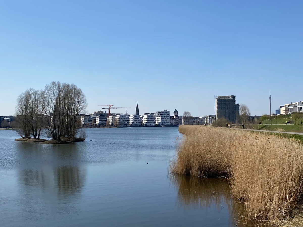 Immer noch wirkt das Ganze irgendwie charakter- bzw. seelenlos, ohne Esprit und könnte statt in Dortmund auch in jeder beliebigen Stadt des Landes angesiedelt sein. Würde auf der knapp einstündigen Runde um das Gewässer nicht immer wieder der Florian-Turm am Horizont durchschimmern, man würde sich nicht in Dortmund bzw. im Ruhrgebiet wähnen.