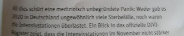 Die Wahrheit sieht anders aus: Das Bundesamt für Statistik meldet alleine für die 46 Kalenderwoche acht Prozent mehr Tote als im Vorjahr und Intensivmediziner warnen seit Wochen, aber das kümmert die beiden ziemlichen besten Freunde der Pandemie nicht.