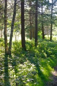 In Estland kann man Ölschiefer im Tagebau abbauen oder unter Tage, auch mit Bohrlöchern. In das erste wird heißer Dampf gepustet, um Bitumen aus dem Sand zu lösen, in dem anderen steigt es dann als schwarzes dickflüssiges Erdöl zu Tage. Von Duschen ist mir nichts bekannt, wohl aber dass die Ölschieferindustrie eine ziemlich schmutzige Angelegenheit ist. Es wird Landschaft verbraucht im Nordosten Estlands. Sand und andere Überreste müssen nach der energieintensiven Dampfattacke deponiert werden. Und natürlich ist der CO2-Ausstoss der zwei estnischen Kraftwerke erheblich. Trotzdem setzt Estland – erst Recht angesichts „peak oil“ – voll auf sein Ölschiefer, und ich mit: Ohne Strom und andere Netze wäre es doch ziemlich anders hier. Wald eben.