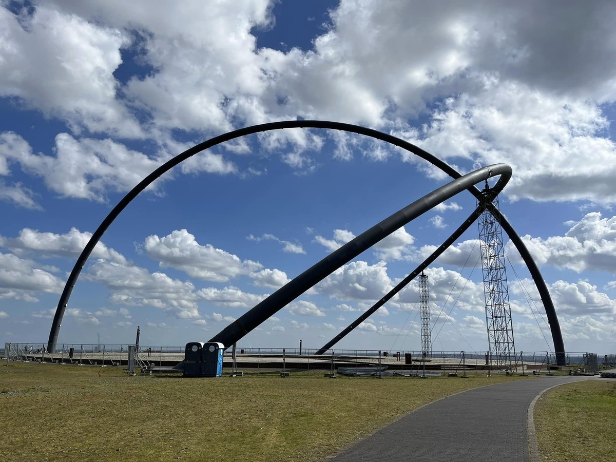 Zum Horizontobservatorium: Das Bauwerk von offiziell 88 Metern Durchmesser sollte ursprünglich eine moderne Version prähistorischer Steinkreise und Bauwerke wie Stonehenge darstellen. Klingt toll, und das wäre es wohl auch, wenn der Bau der Anlage damals nicht völlig danebengegangen wäre. Inzwischen kann man sich des Eindrucks nicht erwehren, dass die historischen Baumeister da doch schon mehr draufhatten, als die Macher moderner Prägung. Denn schon kurz nach der Eröffnung der Anlage am 20. Dezember 2008 wurden erhebliche Risse im Äquatorbogen festgestellt. Dies führte dazu, dass das Areal im Januar 2009 aus Sicherheitsgründen gesperrt und der Bogen bis zum heutigen Tage provisorisch durch zwei zusätzliche Pfeiler gestützt werden muss.