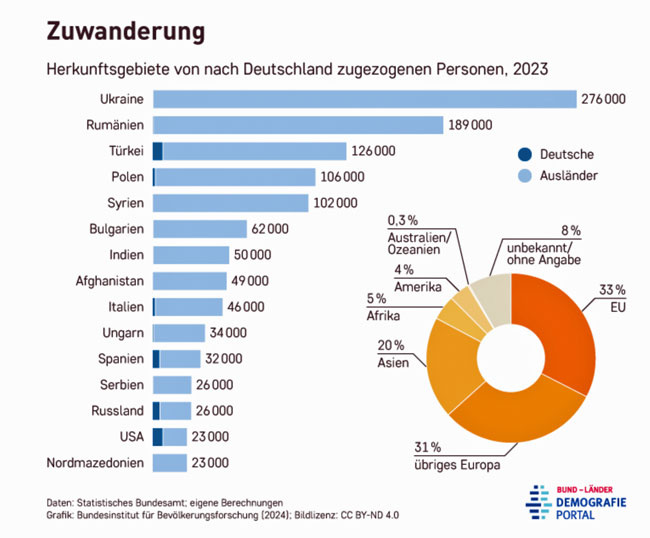 Khani hat Wurzeln im Iran, Chebli im Libanon. Damit sind sie unter den Zuwanderern eine Minderheit. Die meisten Menschen mit Migrationshintergrund in Deutschland haben Vorfahren in europäischen Staaten. Durch Ukrainer ist die Dominanz der Europäer weiter gestiegen: