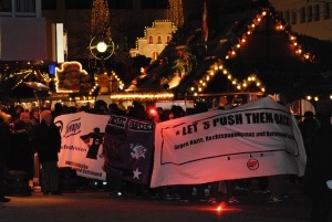 Am Rande der Demonstration kam es zu einer körperlichen Auseinandersetzung mit einem Neonazi, der sich auf dem Weihnachtsmarkt aufhielt. Die Demonstranten ließen sich davon jedoch nicht beirren und zogen zügig weiter.