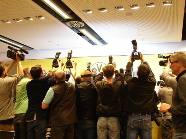 Es war der erwartet große Medienauftrieb heute Mittag in Dortmund, als im völlig überfüllten Presseraum des ‚Westfalenstadion‘ der neue BVB-Trainer Thomas Tuchel offiziell von Vereinsseite aus vorgestellt wurde.