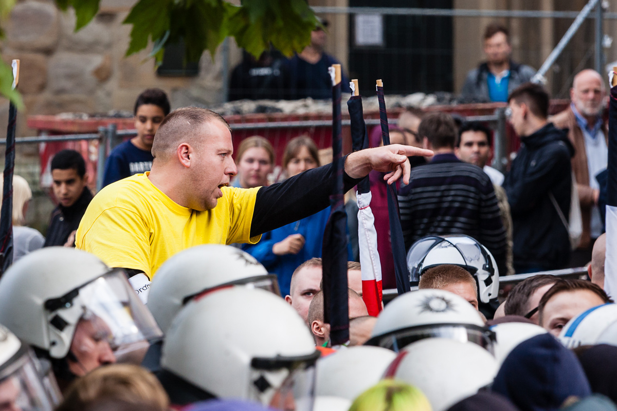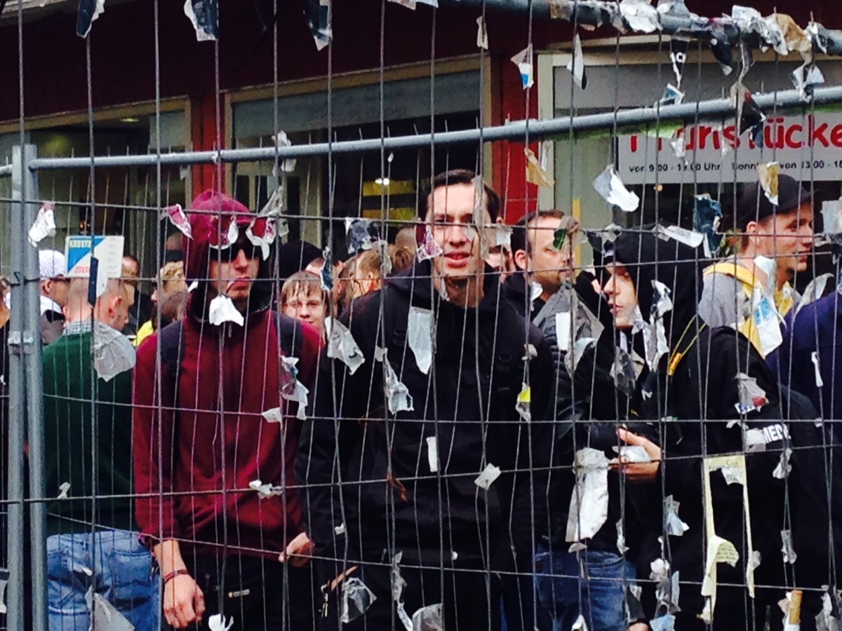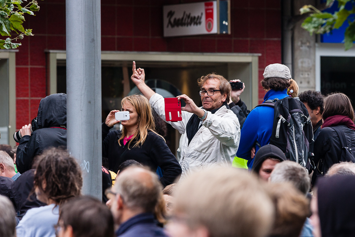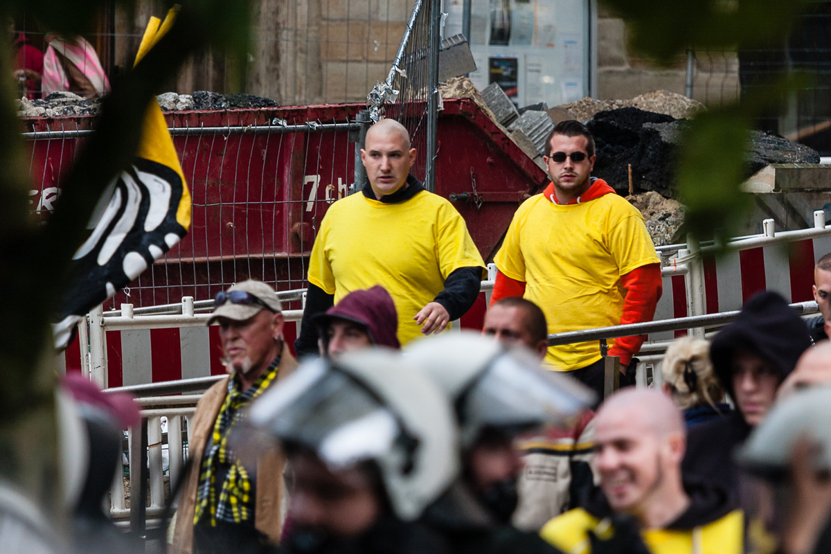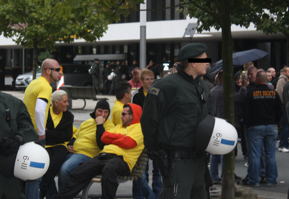 Gestern Nachmittag gegen 15.00 Uhr schien es ein guter Tag für Dortmund zu werden: Das Anti-Nazi Bündnis Blockado hatte die Katharinentreppe friedlich besetzt, gegenüber dem Hauptbahnhof demonstrierten Teilnehmer des Christopher Street Days bunt und laut gegen die Nazis. Die standen zu dieser Zeit auf der Kampstraße, weit entfernt von allen Gegendemonstranten. Ein paar BVB-Fans kickten in sicherer Entfernung von ihnen, die Polizei hatte eine lockere Kette gebildet. Alles sah nach einem entspannten Nachmittag aus. Hätten die Nazis ihre Kundgebung auf der Kampstraße abgehalten – ihr ursprünglicher Zielort war ohnehin nicht erreichbar – wäre es ein ruhiger und etwas verregneter Nachmittag geworden.