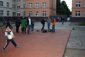 Die Uhr läuft. Das Loch ist ausgestochen, die Pflanze auf dem Weg in die neue Heimat, als plötzlich das Spiel an Fahrt gewinnt. Zwei Gören, Bratzen, aufgemotzte Teeniegirls tauchen auf, kreischen, schimpfen, klingeln im Nachbarhaus. Die Gedenkstätte werde geschändet. In der dritten Etage reißt ein Feinripptyp das Fenster, brüllt los. Frau P. ist aufgeregt. Die Uhr wird angehalten. Eskalation zum Finale, ich bin begeistert, bewundere die Authenzität der Laiendarsteller. Großartig, so gut kriegt Ghetto im Schauspielhaus keiner hin. Herr Feinripp droht mit seinem Kollegen Miroslav. Ich spiele mit, befrage verständnisvoll die Mädchen, beschwichtige. Hier sei doch ein BVB-Anhänger aus dem Fanclub erstochen worden, für den habe man eine Gedenkstätte im Grünstreifen errichtet, die wir jetzt gerade zerstörten, erzählen sie. Das lässt sich alles klären, denke ich, Improtheater habe ich drauf. „Immer die Angebote der Mitspieler annehmen“, lautet die erste Regel. Also höre ich einfühlsam zu, bedaure und gebe den Softie-Sozialarbeiter. Die Lage entspannt sich, Frau P. schaltet sich ein, die Gedenkstätte wird in der Dunkelheit schließlich unversehrt ein paar Meter weiter entdeckt. Die Geschichte der Chefgärtnerin klingt allerdings etwas anders. Zwei Typen, ein Weib kommen drin vor, der Fanclub wird zum reinen Saufverein und eine Teenie-Nutte spielt auch mit. Unsere Aktion wird abgebrochen, ich fühle mich schon wieder als Loser, als wir schließlich im einsetzenden Nieselregen vom Theaterbulli abgeholt werden. Ich fühle mich wie im Besenwagen der Tour de France.
